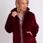 Burgundi szőrmés, húzózáras kabátka " Vadvirág kollekció "