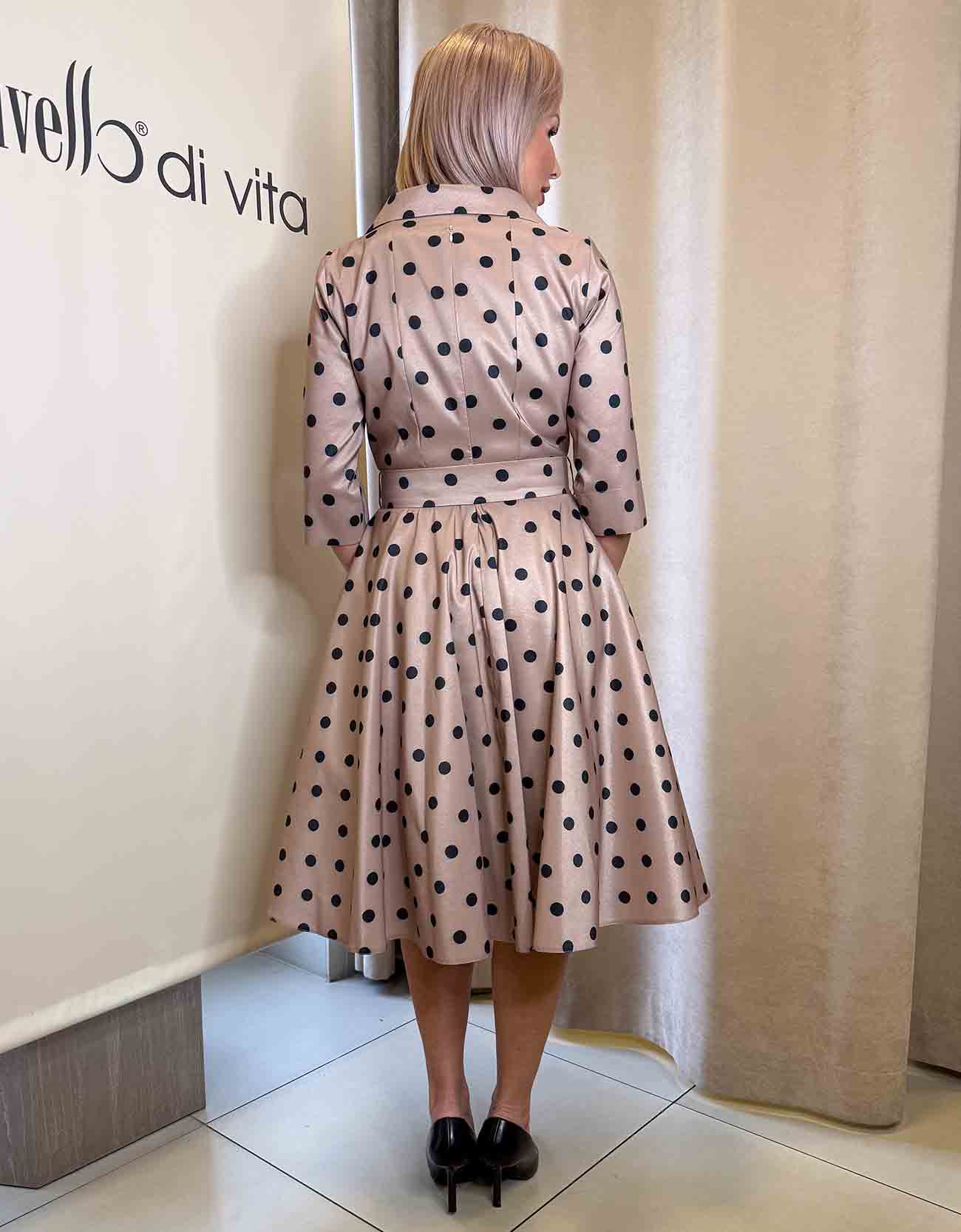 A modell S-es, 36-os méretet visel.
