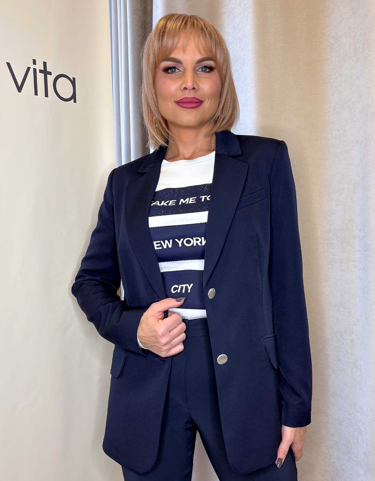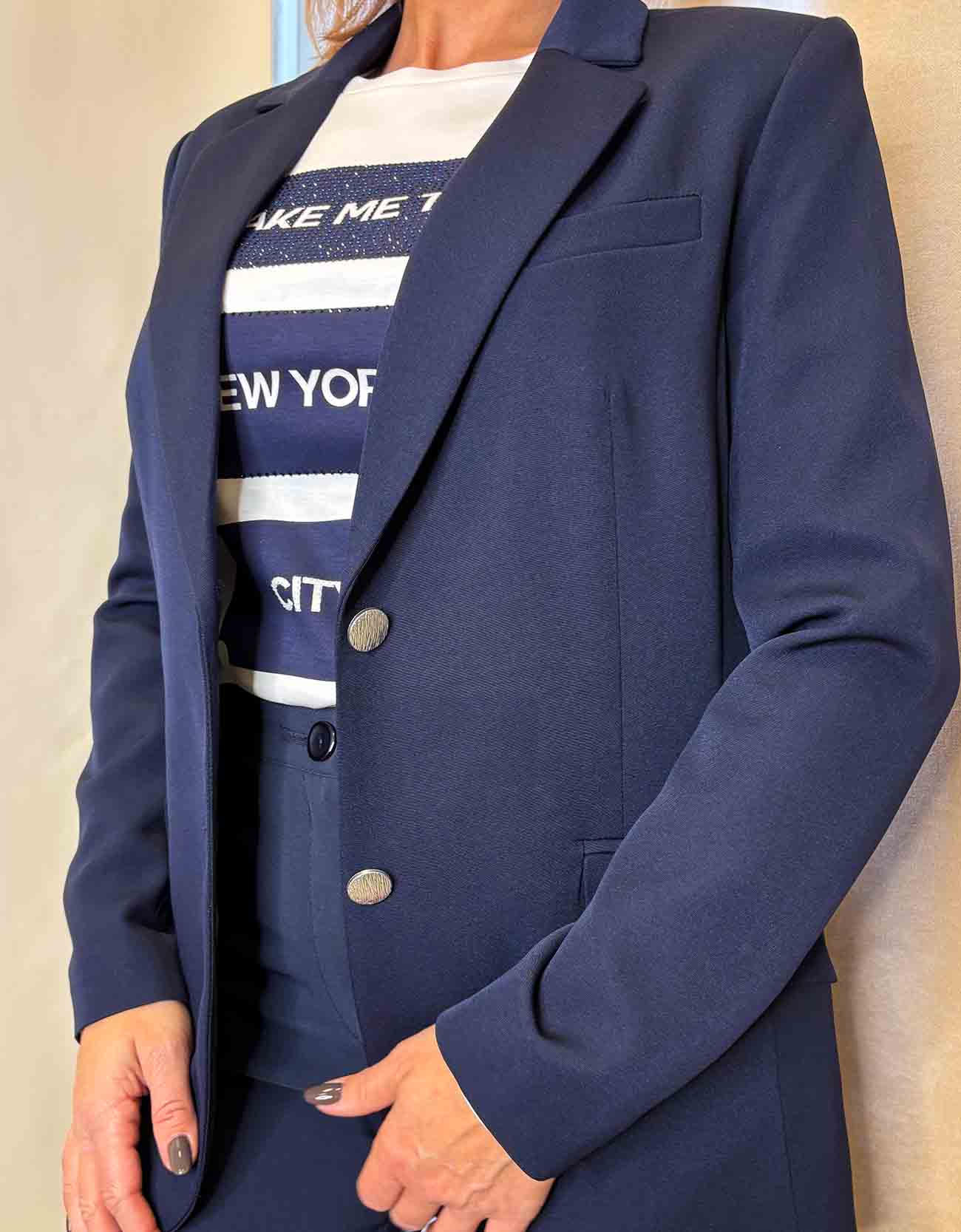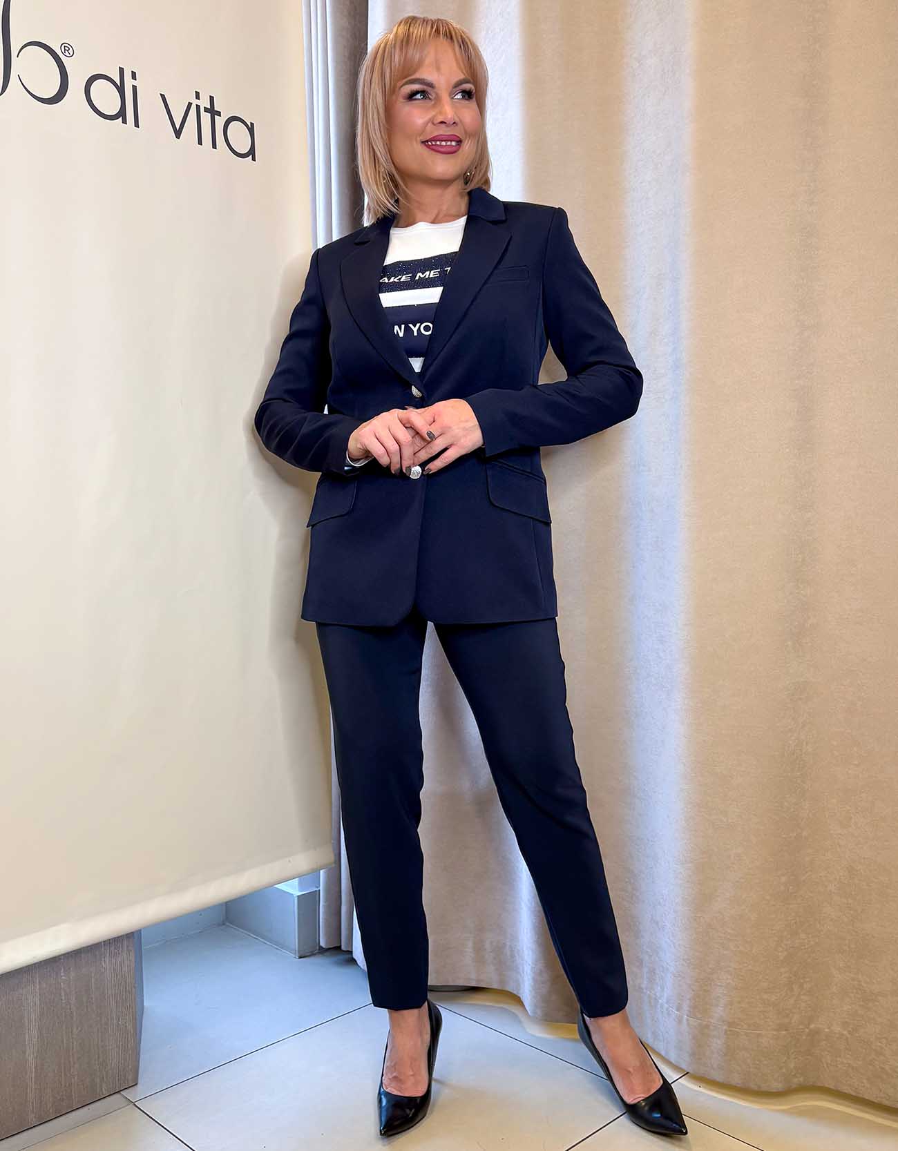 Sötétkék gombos, galléros blézer „Livello”
