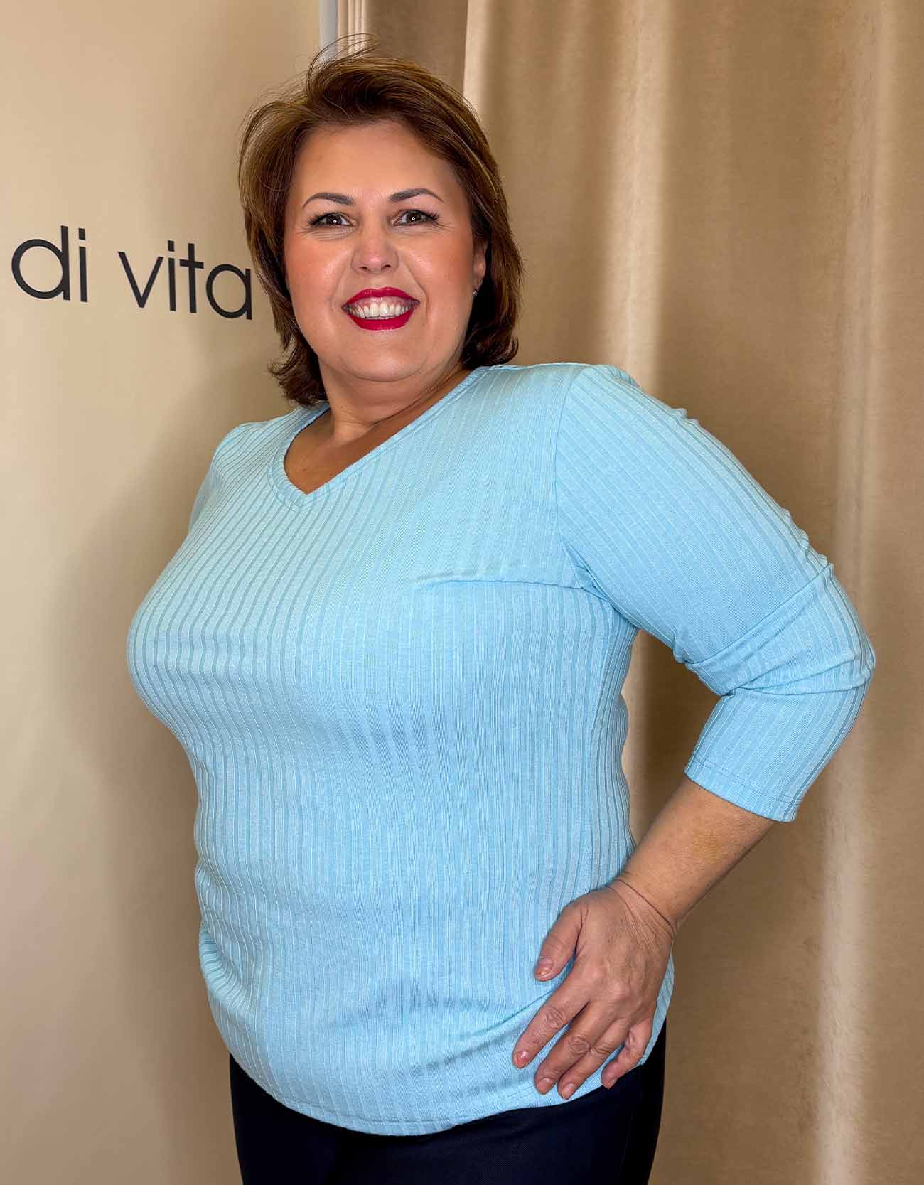 Világoskék V-nyakú felső „Livello”