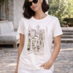 • Fehér színű drapp színá grafikás felső "Esqualo"